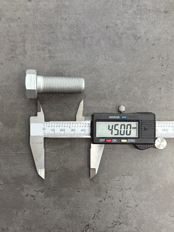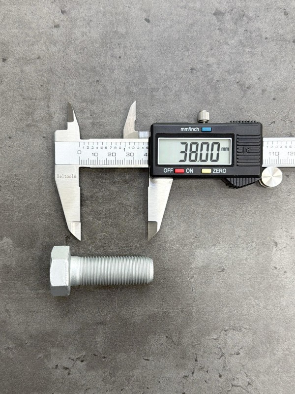 Болт с шестигранной головкой, высокопрочный, мелкий шагом резьбы. Стандарт: таблица FIAT-ВАЗ 10312. Диаметр резьбы: 12 мм. Шаг резьбы: 1,25 (мелкий). Длина болта: 25 мм. Длина резьбы: 25 мм. Размер "под ключ": 19 мм. Класс прочности: 10.9. Покрытие: цинк-ламель. В соответствии со стандартами, длина болта измеряется от опорной части головки до конца фаски, которой завершается его резьбовой стержень.