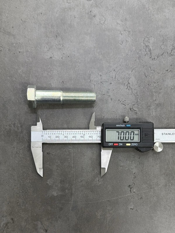 Болт с шестигранной головкой. Стандарт: таблица FIAT-ВАЗ 10312. Заводской номер : 00001-0055412-31. Длина болта: 70 мм. Диаметр резьбы: 12 мм. Шаг резьбы: 1,25 (мелкий). Длина резьбы: 30 мм. Размер "под ключ": 19 мм. Класс прочности: 10.9. Покрытие: цинк-ламель. В соответствии со стандартами, длина болта измеряется от опорной части головки до конца фаски, которой завершается его резьбовой стержень.