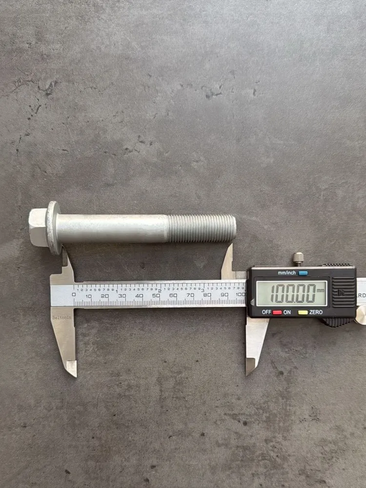 Болт фланцевый, высокопрочный, мелкий шаг резьбы, без насечек. Болт российского производства. Стандарт: DIN 6921. Можно использовать, как аналог ГОСТ ISO 4162-2014. Диаметр резьбы: 16 мм. Шаг резьбы: 1,5. Длина болта: 100 мм. Длина резьбы: 38 мм. Размер "под ключ": 21 мм. Класс прочности: 10.9. Покрытие: цинк-ламель. В соответствии со стандартами, длина болта измеряется от опорной части головки до конца фаски, которой завершается его резьбовой стержень.