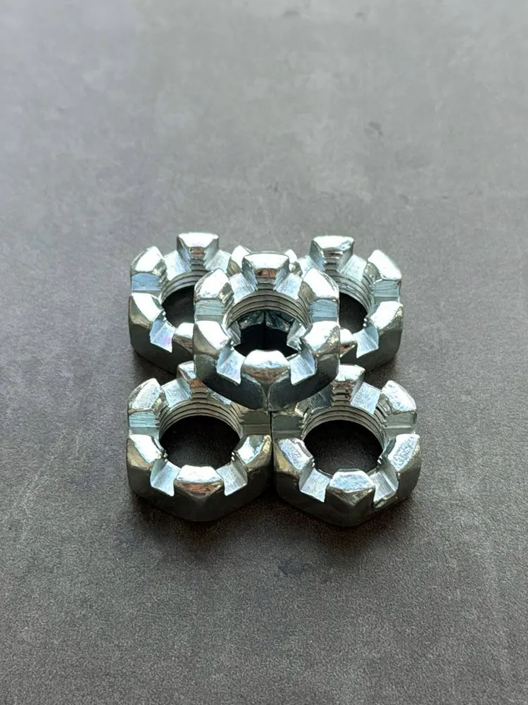 Гайка корончатая, прорезная низкая М12 ГОСТ 5919-73, класс прочности 10, покрытие цинк ГОСТ 5919-73