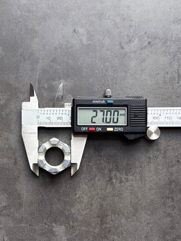Гайка М24х1,5 корончатая, мелкий шаг резьбы. Гайка российского производства. Артикул: 853514. Применяемость: гайка рулевого пальца КАМАЗ. Диаметр резьбы: 24 мм. Шаг резьбы: 1,5. Высота: 20 мм. Размер "под ключ": 36 мм. Высота от опорной поверхности до основания прорези: 14 мм. Покрытие: цинк.