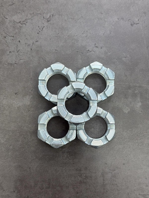 Гайка М24х1,5 корончатая, мелкий шаг резьбы. Гайка российского производства. Артикул: 853514. Применяемость: гайка рулевого пальца КАМАЗ. Диаметр резьбы: 24 мм. Шаг резьбы: 1,5. Высота: 20 мм. Размер "под ключ": 36 мм. Высота от опорной поверхности до основания прорези: 14 мм. Покрытие: цинк.